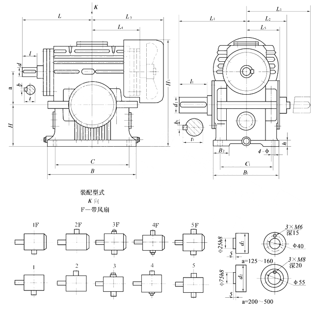 TPA125、TPA160、TPA200、TPA250、TPA315、TPA400、TPA500、通用型減速機(jī)形式及外形尺寸