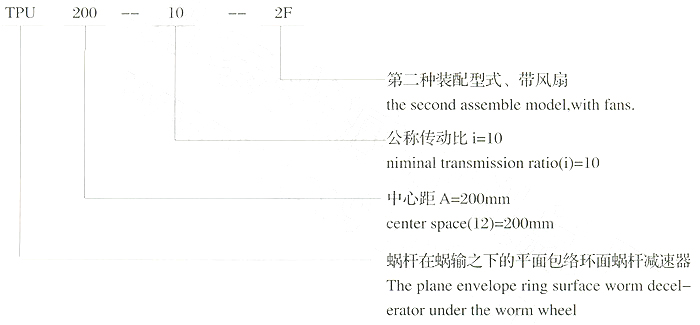 該減速器系列有四種型式:TPG、TPU、TPA、TPS.其中:TP-平面包絡環(huán)面蝸桿組合為