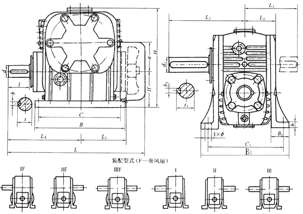 TPG80、TPG100、通用型減速機形式及外形尺寸(Ⅰ—Ⅲ)