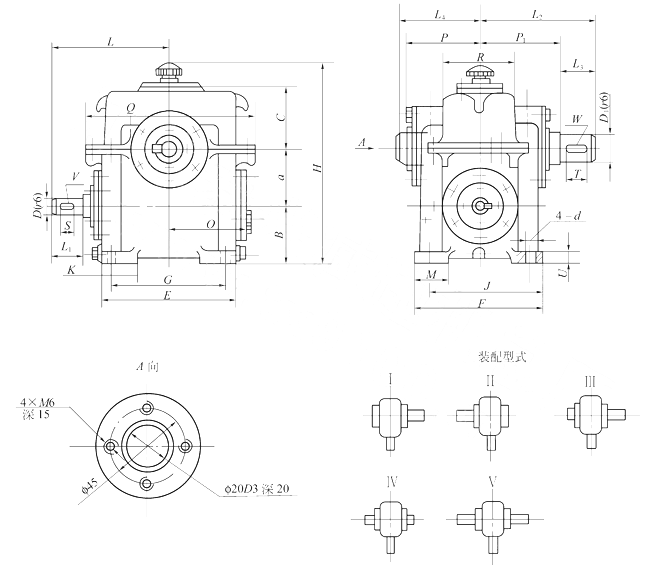 圓柱蝸桿減速器的外形、安裝尺寸及裝配形式 |