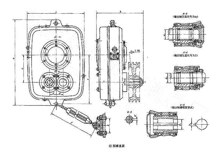 | ZJ型專用齒輪減速器外型及安裝尺寸圖 |