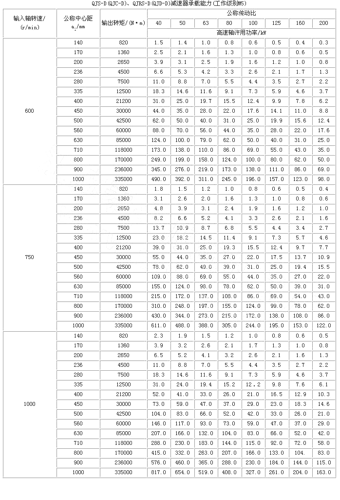 起重機(jī)底座式減速器是在三支點(diǎn)減速器的基礎(chǔ)上派生出來的。因此QJ-D型減速器的工作條件、主要技術(shù)參數(shù)、承載能力和輸出軸端最大允許徑向載荷與三支點(diǎn)減速器相同,其它有所不同。