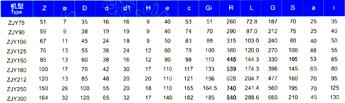 此系列包括:ZJY75,ZJY90,ZJY106,ZJY125,ZJY150,ZJY180,ZJY212,ZJY250,ZJY300