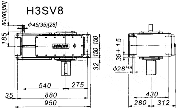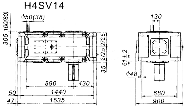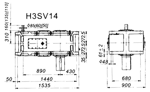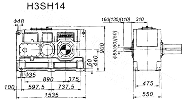 1. H、B齒輪箱采用通用設(shè)計方案,可按客戶需求變型為行業(yè)專用的齒輪箱。