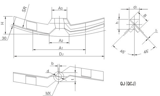 | DJ | d | d1 | h | SR | H | A1 | A2 | A3 | 鍵槽 | B | MX | δ | 重量 | ||