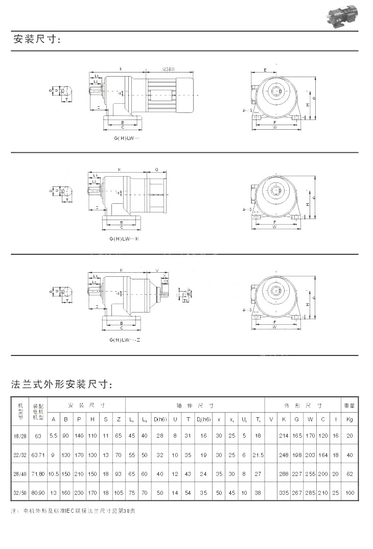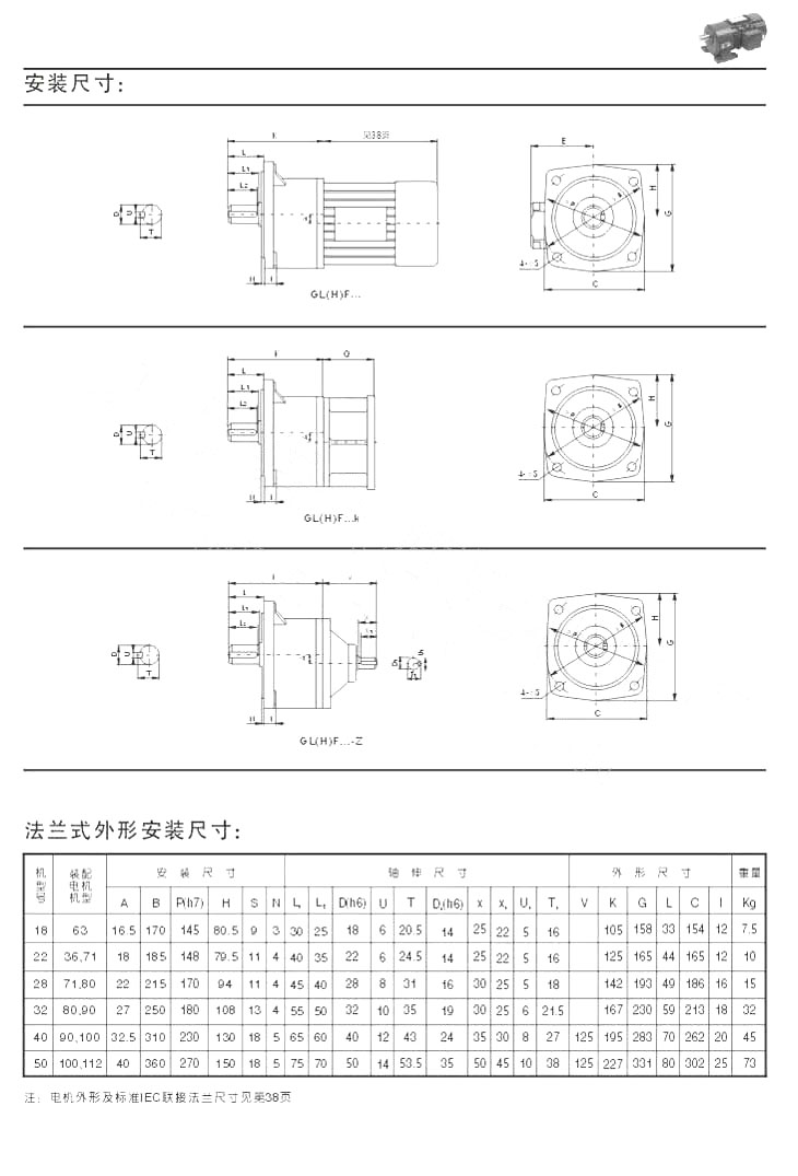 使用與維護(hù)電機(jī)的選用其他說明電機(jī)外型及標(biāo)準(zhǔn)IEC聯(lián)結(jié)法蘭尺寸表